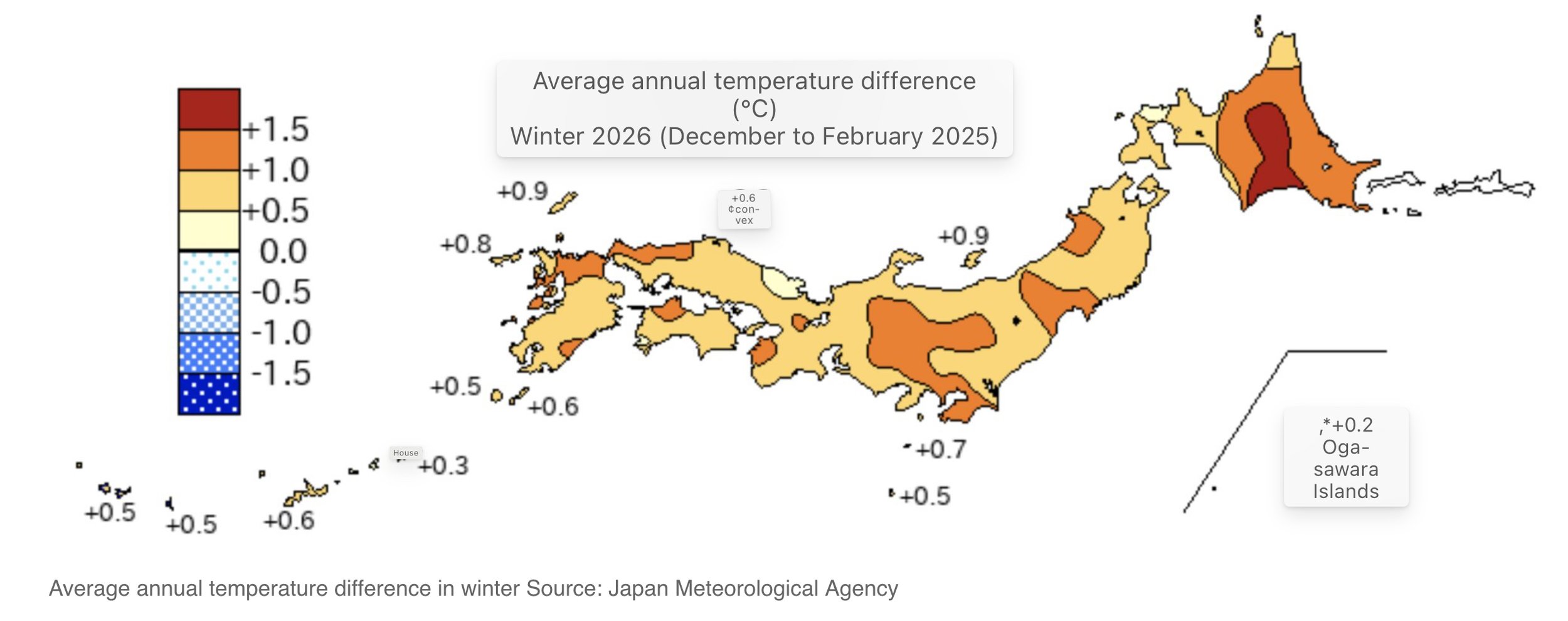 According to the Japan Meteorological Agency, winters are warming overall. The Japan Meteorological Agency reports clear warming trends: