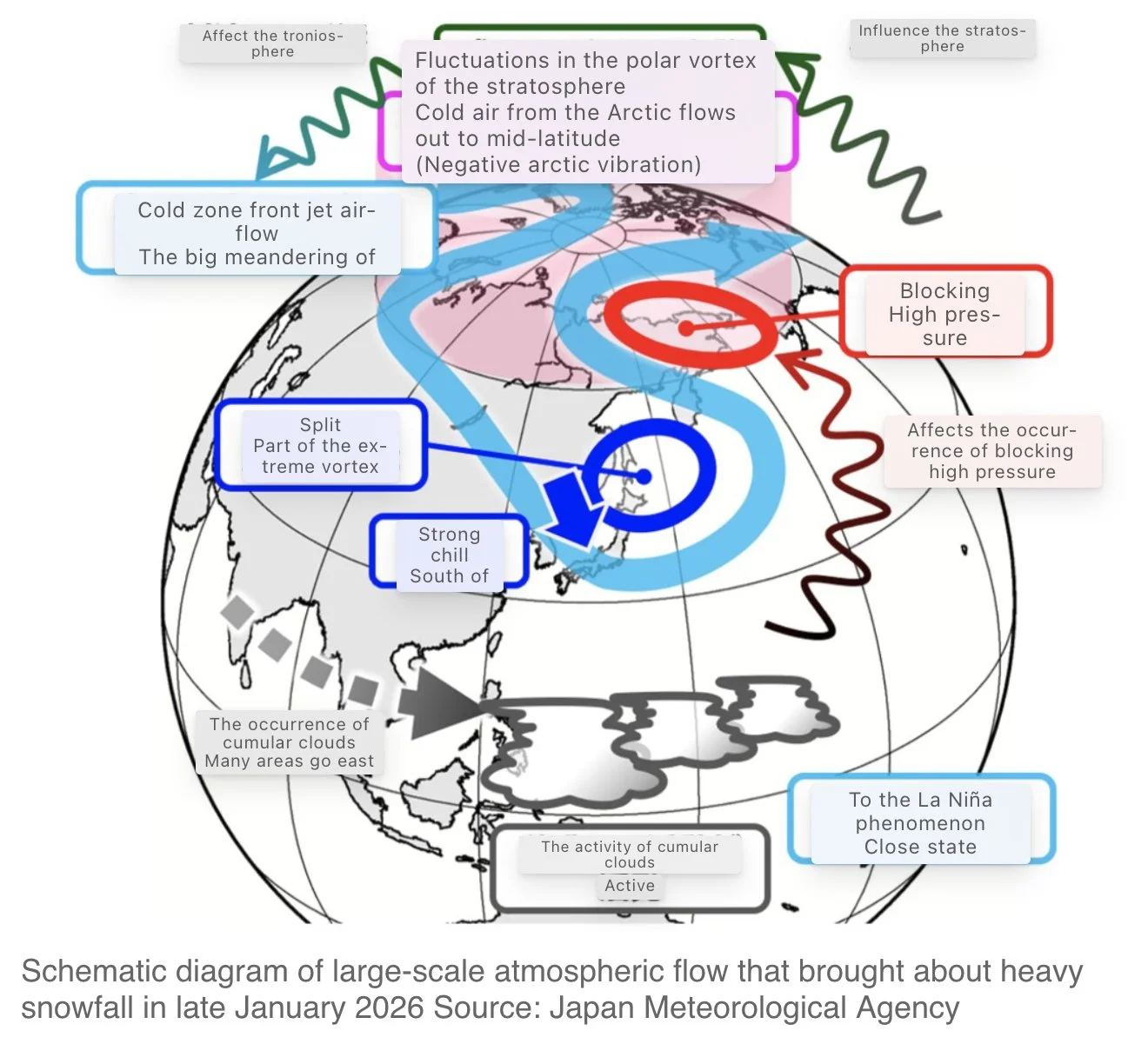 A recent analysis by the JMA reported that snowfall during a major winter event increased by about 7 percent due to warming driven moisture increases.